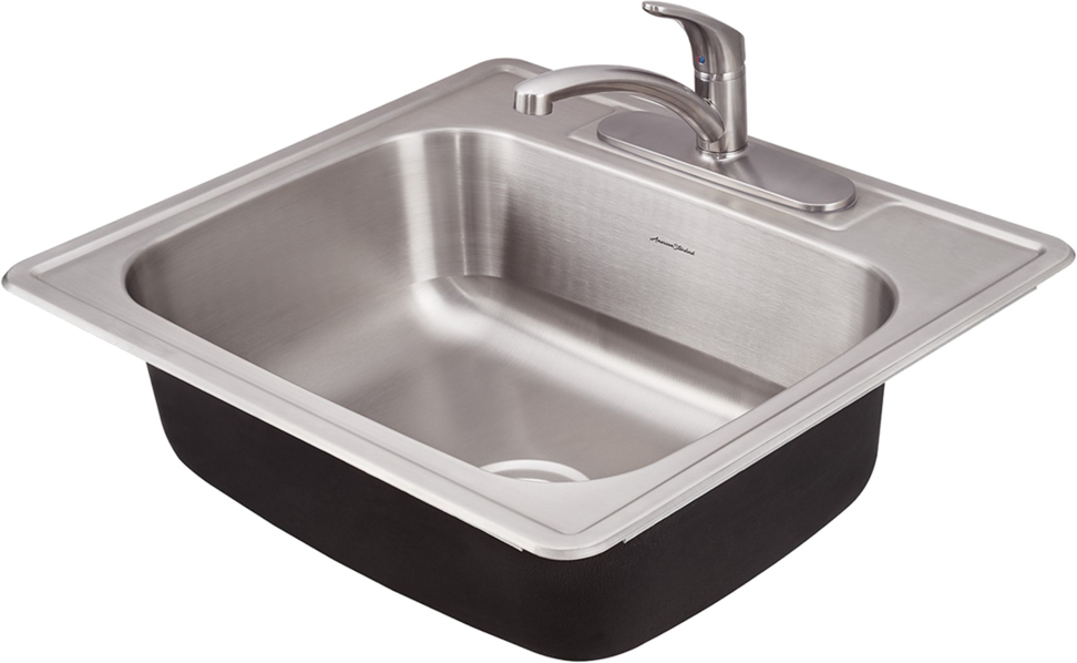 For a quick kitchen makeover, the Colony 25x22 Single Bowl Kitchen Sink Kit includes a complementary Colony PRO Stainless Steel single control faucet and a matching drain for an all-in one solution to update your kitchen. Featuring rubber sound pads and multi-layer insulation to reduce noise and condensation on the underside of the sink, the Colony Single Bowl Sink kit is a perfect update for any traditional kitchen.Read More