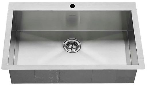 The American Standard Edgewater® Stainless Steel 33" 1-Hole Dual Mount Single-Bowl Kitchen Sink features a spacious basin ideal for large cookware. Made from 18-gauge stainless steel, it includes sound-reducing pads and protective undercoating. Designed for dual mount installation, it offers flexibility, durability, and a sleek, easy-to-clean finish for everyday kitchen tasks.Read More