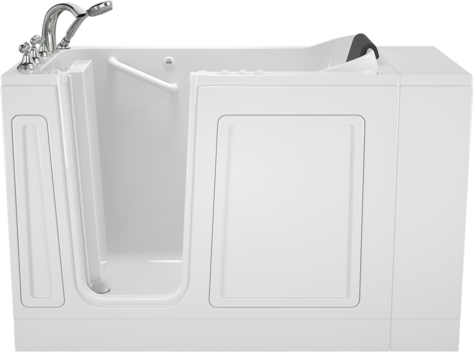 Enjoy peace of mind with the Luxury Series Combination Massage Walk-in Tub. Designed to fit in smaller spaces, the Acrylic 28x48-inch Jetted Walk-in Tub uses less water and can be retrofit into a standard-size bath space using the included Extender Kit. Featuring both the Air Spa and Whirlpool Massage systems, this walk-in bathtub has both air and water jets and provides a soothing massage experience. Enjoy the comforts of a cushioned neck rest and chair height seat and the safety of the grab bar and textured floor. Includes a bath faucet and hand shower for bathing convenience.Read More