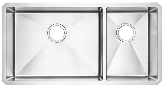Handmade 35 x 18 x 9-inch offset double-bowl sink